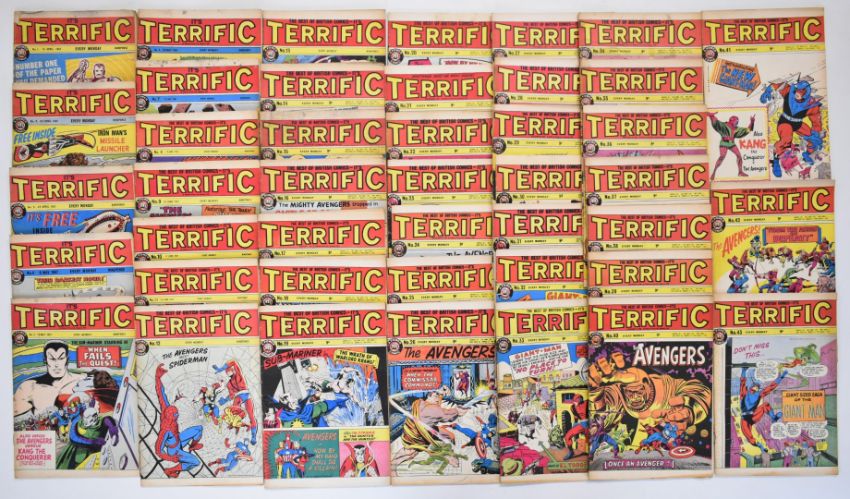 Forty three issues of Terrific by Odhams Press Ltd, comprising a straight run #1-#43, Silver Age reprints of original Marvel comics.