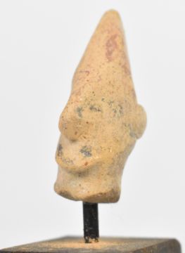 A collection of pre Colombian pottery masks, figures and artefacts, probably 14th/15thC, tallest 13cm