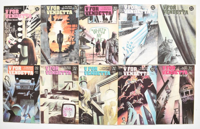 V for Vendetta comics by DC (1988/89), comprising issues #1-10 complete, Alan Moore and David Lloyd.