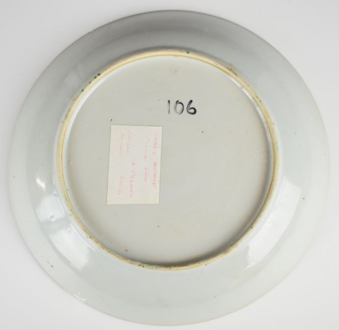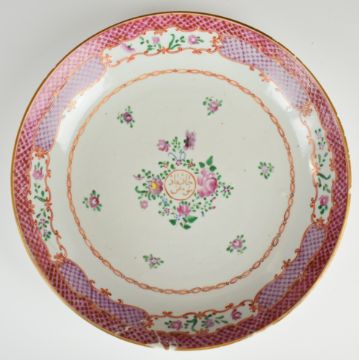 Pair of 19thC famille rose shallow dish, H4.5, diameter 25cm