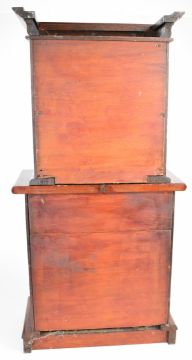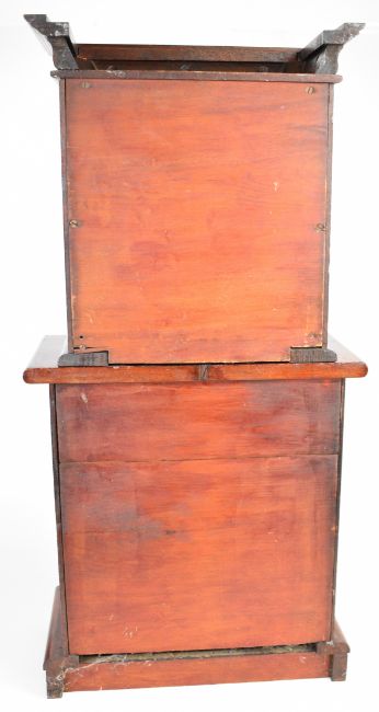 Apprentice or miniature novelty mahogany bookcase with twin glazed doors to top and four graduated drawers to base, W40.5 x D20 x H83cm