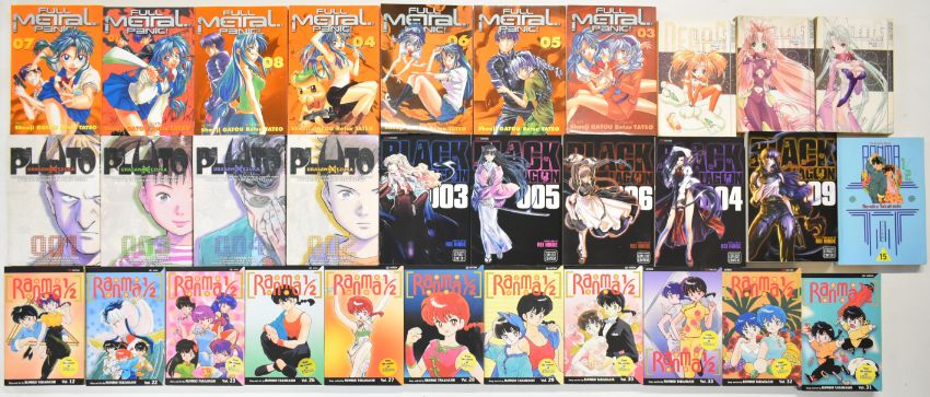 Forty nine Japanese Manga graphic novel comic books by TokyoPop, and similar to include Full Metal Panic, Ragnarok, Pluto, Ranma and Bamboo Blade.