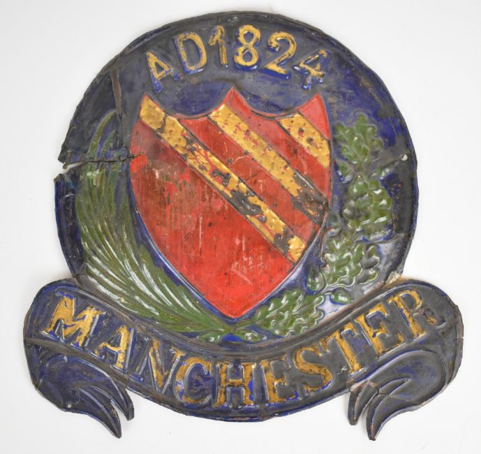 Two firemarks, Manchester Fire and Life Insurance Co (W71E) and Patriotic Assurance Co of Ireland, tallest 24cm