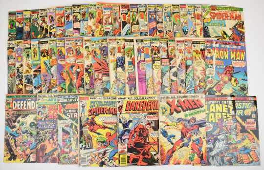 Fifty seven Bronze Age Marvel comics to include early Iron Man and X-Men issues and Daredevil #131, first appearance of Bullseye.