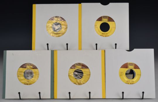 Twenty six USA released Tamla Motown records on Gordy and Tamla. Includes Bunny Paul (Gordy 7017), Gospel Stars (Tamla 54037), The Miracles (Tamla 54036), Brenda Holloway (Tamla 54155), Miracles Shop Around (Tamla 54034) (three copies, two are early 'striped' label and one a later re-issue), Isley Brothers (T 54128), Mary Wells (Motown 1003) with early pink 'striped' label. Vinyl appears VG to Ex in the main.