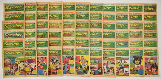 Approximately three hundred issues of Scorcher and Score comic, with long consecutive runs through the 1970's, IPC Magazines Ltd.