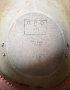 [Postal History] Vintage GPO clothing to including felt covered Postman's hat (stamped GPO 1931), Royal Mail cap with badge, 1930s Post Office Postman armband or brassard with brass lettering on felt, with similar Telegraph Messenger armband and two later examples, vintage Boys Brigade pill box hat and Boy Messenger armband, silk top hat (L. Silberston) with gold band, leather belts and pouches/wallets, bike lamps and torches, long leather glove and Royal Mail ties  Provenance Bath Postal Museum