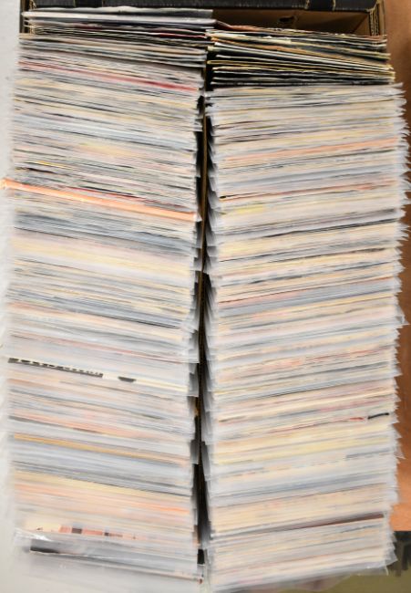 Approximately four hundred and twenty five 7" singles as consigned include Pop / Indie / Synth / Heavy Rock / Rock etc. Viewing in person is recommended for this lot which was a part of a large collection. Includes Depeche Mode, The Beat, Specials AKA, Deee-Lite, Beastie Boys, Def Leppard, Kate Bush, Culture Club, Cookie Crew, Art of Noise, Bad Manners, Altered Images, Beat Masters, Dr Hook, Duran Duran, Desireless, Dire Straits, Abba, ABC, Blancmange, Marc Almond, Bros, Bangles, Eric Clapton etc. The majority appear to be 1980s - 1990s with some earlier and some later. In alphabetical order when consigned, they have been split into lots generally alphabetically and they are all housed in poly liners and appear to be well looked after in the main.