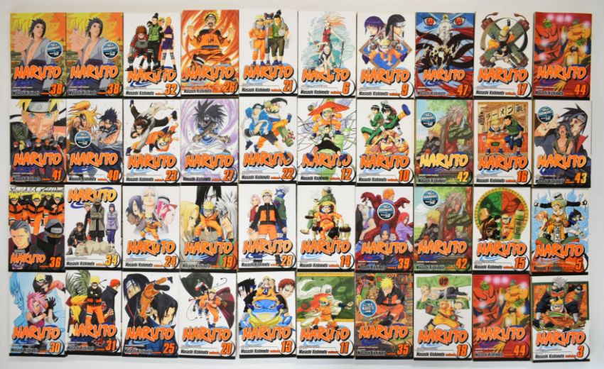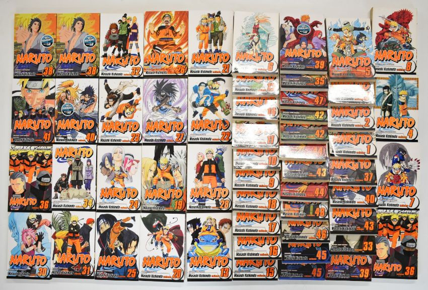 Fifty five 'Naruto' Japanese graphic novel comic books by Masashi Kishimoto comprising a straight run 1-28 and a further twenty seven volumes, published by Shonen Jump and Viz Media.