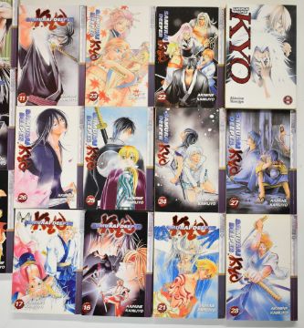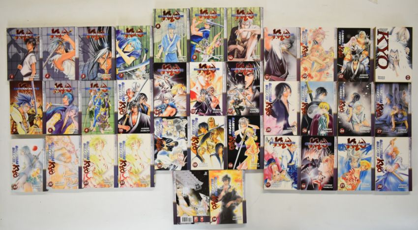 Thirty six Samurai Deeper Kyo Japanese Manga graphic novels by Akimine Kamijyo comprising volumes 1-36, published by Tokyo Pop.