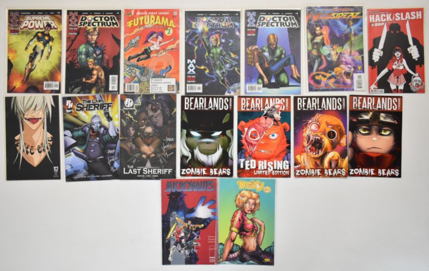 One hundred and eighty mostly Modern Age indie comics to include Teenage Mutant Ninja Turtles, Ghostbusters, PVP, Streetfighter, Gen 13, Devil May Cry, Shark-Man, The Darkness and Radioactive Man.