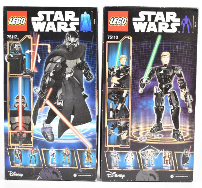 Eight Lego Star Wars Buildable Figures comprising Luke Skywalker 75110, Kylo Ren 75117, Chewbacca 75530, Darth Vader 75111, Obi-Wan Kenobi 75109, Clone Commander Cody 75108, Jango Fett 75107 and General Grievous 75112, some boxes remain sealed.