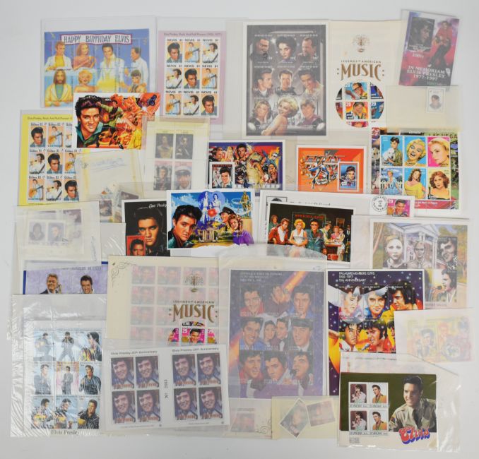 A large collection of Elvis Presley stamps in albums and album pages, includes worldwide sets and miniature sheets, mostly u/m and first day commemorative covers, uncut sheet of St Vincent mini sheets, album of Stars & Screen Collezion and album of 'Elvis the Collection' first day covers