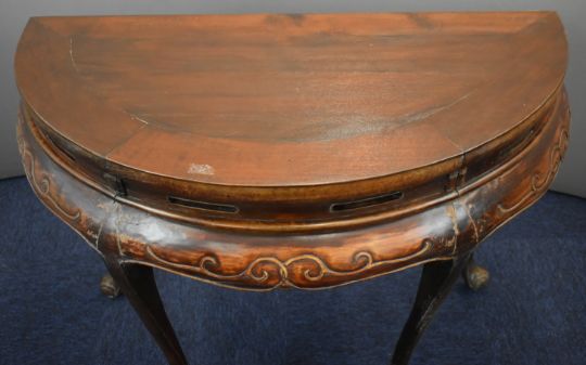 Pair of 19thC Chinese jointed cabriole tables with pierced and scrolling decoration, raised on cabriole legs, W105 x D56 x H84cm. Note: the previous lot is identical and would make a set of four
