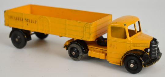 Two Dinky Supertoys diecast model haulage vehicles comprising Guy Flat Truck with Tailboard 513 and Bedford Articulated Lorry 521, both in original boxes.