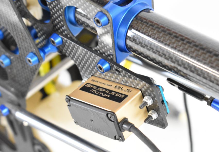 Thunder Tiger Raptor Series petrol powered professional radio controlled (RC) helicopter body, assembled and fitted with motor and servos, together with two additional pairs of Curtis Youngblood rotor blades, Robbe battery charger, batteries and soft carry bag.