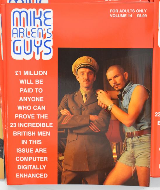 [Adult Entertainment] Collection of Mike Arlen’s Guys, an erotic gay interest vintage glossy magazine (1980s) with colour photographic images comprising fifteen copies of volume 9, over twenty-five copies of volume 12, fifty copies of volume 14 and thirty-five copies of volume 15, together with fifteen copies of Manpower adult magazine issue number 1 (142)