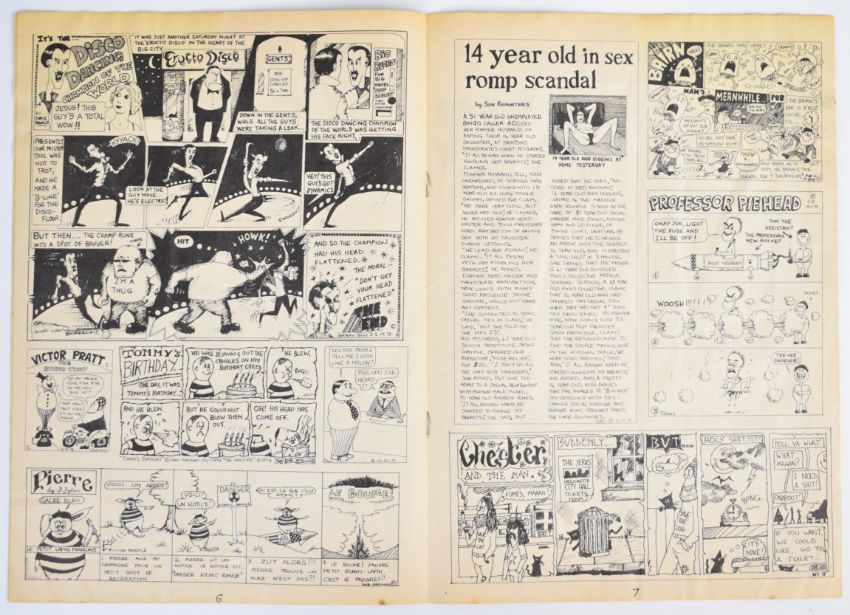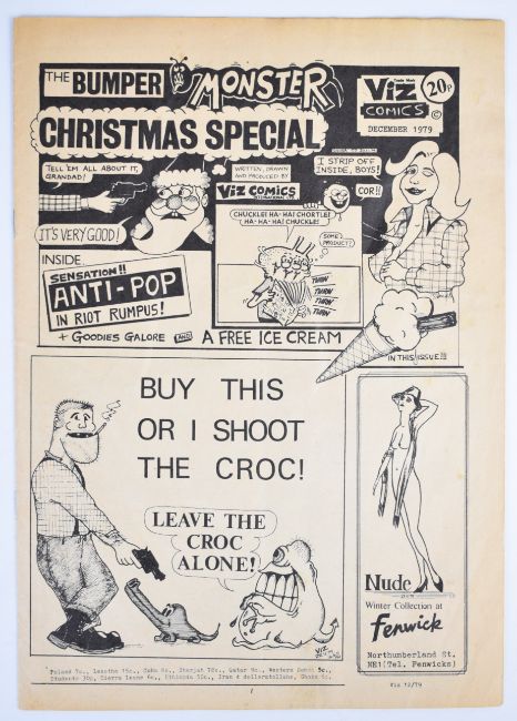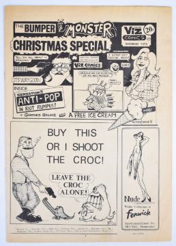 Viz Comics issue #1 (1979), first printing with 'Free' ice cream in red stapled to inside back cover and deliberate non sequential page numbering, self published by Chris Donald.