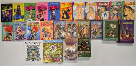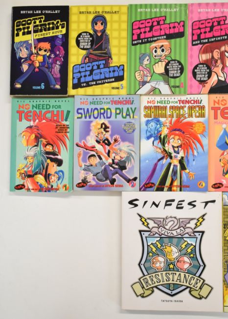 Twenty five Japanese Manga and similar style graphic novel comic books to include Clover, Sgt Frog, Scott Pilgrim, No Need For Tenchi, I Luv Halloween and Sinfest.