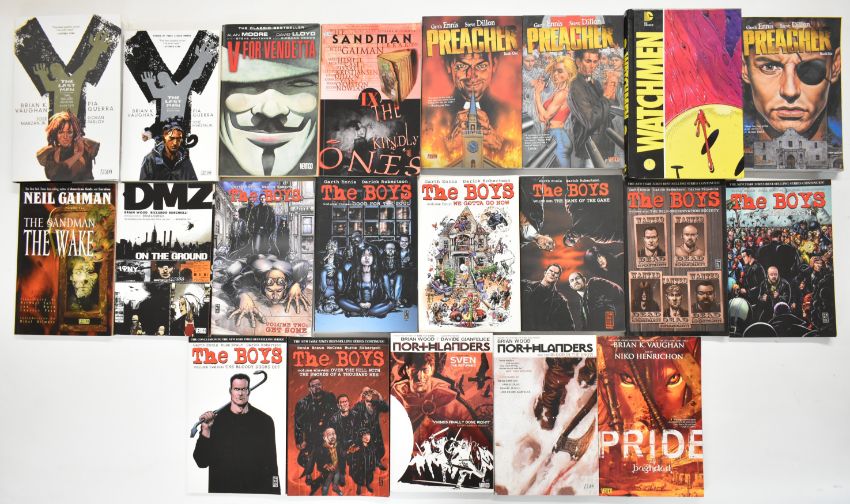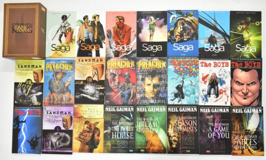 Forty DC Vertigo, Image and Marvel graphic novels to include Preacher, The Boys, Saga, Sandman, Watchmen, V for Vendetta and The Dark Tower.