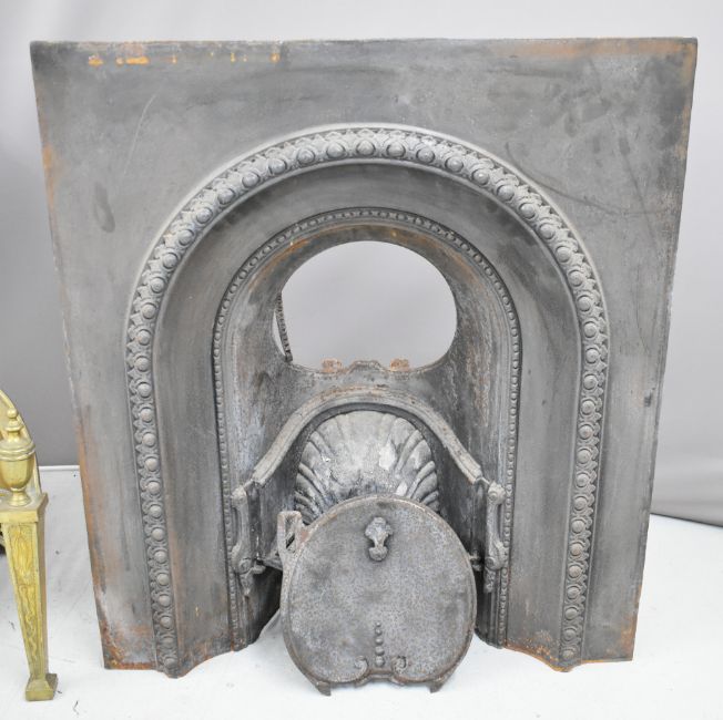 Victorian cast iron fireplace with throat plate, 92 x 81cm.