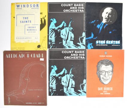 Collection of over fifty Jazz souvenir programmes and musical scores, mostly 1940s/60s, including Ray Charles, Stan Kenton, Harry James, Count Basie, George Shearing Quintet, Dave Brubeck, Ella Fitzgerald with Duke Ellington (1966) and with Oscar Peterson (1965), Salute to Satchmo – A Tribute to Louis Armstrong, Harry James and his Swingin’ Band, Tommy Dorsey with Frank Sinatra Jnr., My Way (1969) I Believe (1947) Goodnight, Irene (1950) All The Way (1957) A Woman in Love / Guys and Dolls with Frank Sinatra, Boogie Bounce 1944 including several signed programmes together with Windsor Theatre programmes, Picturegoer and signed photographs of Beryl Davis etc