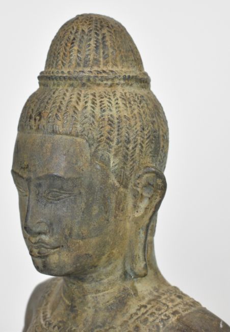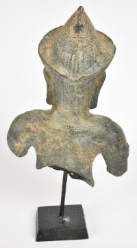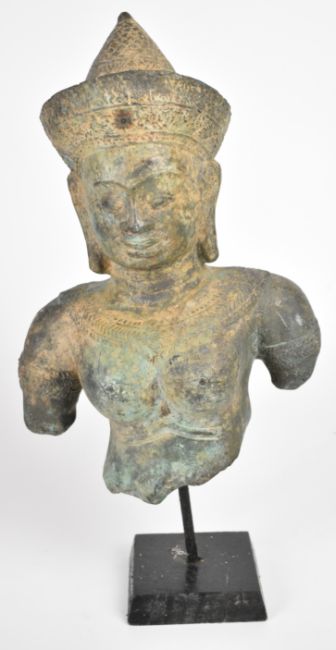 Two bronze busts of Khmer queens/deities, on stands, tallest 44cm