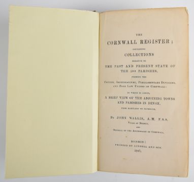 Cornish Worthies: Sketches of Some Eminent Cornish Men and Families by Walter Tregellas 1884, in 2 volumes printed on hand-made paper bound in leather backed cloth boards. Notes and Gleanings of the Counties of Devon & Cornwall edited by William Cotton and James Dallas 1888-89 volumes 1 & 2 bound in one volume. Cornwall Register 1847. A Short Account of Anthony Payne The Cornish Giant and The History of His Portrait (c.1889), in printed wrappers. The Kilkhampton or, Monumental Records for the Year 1980 printed for G. Kearsly (c.1800), in leather backed boards. A Complete Parochial History of the County of Cornwall illustrated 1867-1872 volumes 1-4. North Coast of Cornwall by John Page 1897, in gilt cloth. Devon Notes and Queries 1910-1915 in 2 volumes. The Cornish Coast (North) by Harper 1910. A Short History of The Duke of Cornwall’s Light Infantry 1931. The Archaeology of Cornwall and Scilly by Hencken 1932. John Norden’s Manuscript Maps of Cornwall and Its Nine Hundreds 1972 facsimile and others (22)