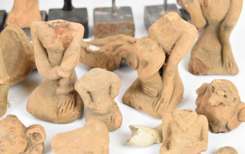 A collection of Indus valley pottery figures and shards, probably 14th/15thC