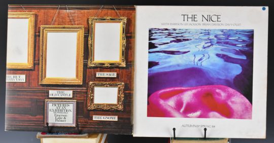 Eleven Emerson Lake and Palmer / The Nice LPs comprising Taurus, Brain Salad Surgery with tri-fold cover and large poster, In Concert, self titled, Trilogy, Love Beach, Works, Welcome Back My Friends...with tri-fold cover, Works Vol 1, Pictures at an Exhibition and The Nice Autumn '67 - Spring '68. Vinyl appears VG+ or better in the main.