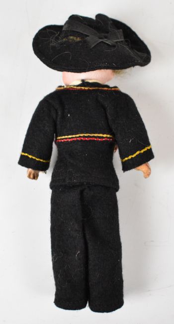Two Armand Marseille miniature bisque headed dolls, both marked A1210M and in traditional dress with weighted eyes, open mouths and jointed limbs, height 19cm.