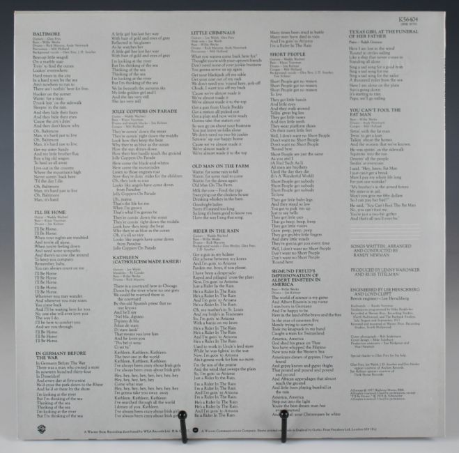 Randy Newman Little Criminals Nimbus Supercut LP (Warner Brothers K 56404). Vinyl, cover and inserts all appear to be Ex+. One of six Nimbus Supercut LPs in this auction, all from a single private collection and all with Nimbus hype sticker on the main sleeve and ‘Nimbus England’ stamped in the dead wax. Nimbus Supercut LPs were produced from the original master tapes using an unlimited all valve mastering process, resulting in an extremely high quality pressing. Only around 1000 pressings of each title were made, and were released as a mail order only promotion to magazine readers
