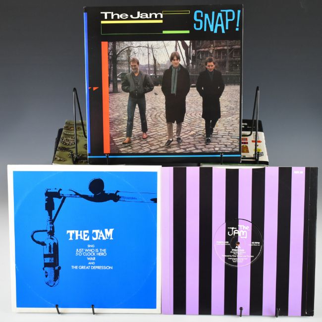 Mod / Punk interest collection of nine LPs and two 12" singles. The Undertones self titled LP and The Jam LPs In the City, Sound Affects No 80, Setting Sons, This Is The Modern World, Dig The New Breed, All Mod Cons, The Gift and Snap! plus two Jam 12" singles. Vinyl appears to be VG+ in the main