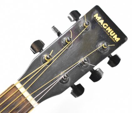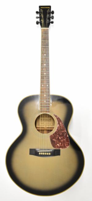 Magnum Custom Series MA-JGB acoustic guitar in green burst finish with rosewood fretboard and faux tortoiseshell scratch plate, likely 1980's, made in Korea.
