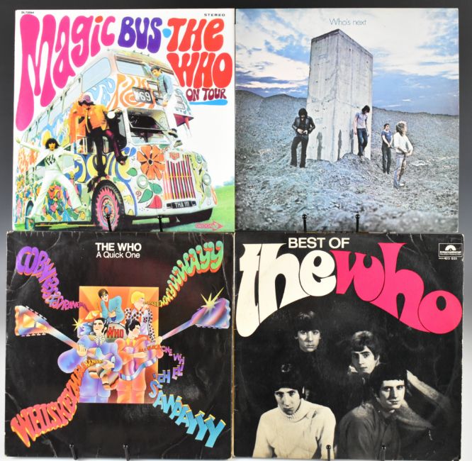 Six LPs by The Who comprising Who's Next (USA pressing with 'BILBO' in deadwax), A Quick One, Magic Bus The Who On Tour (blue vinyl bootleg), Best Of The Who (Australian Polydor International pressing), The Who Sell Out (USA pressing) and Tommy. Best Of and Sell Out vinyl appears G+ / VG- range, remainder appear VG to Ex in the main.