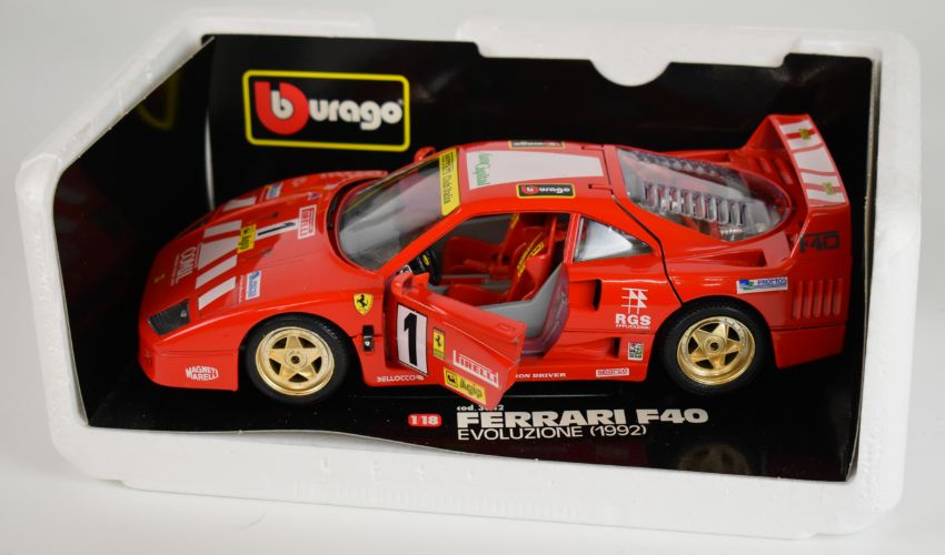 Six Bburago 1:18 scale diecast model Ferrari sports cars comprising 360 Modena, GTestarossa, F50, 456 GT, 250 GTO and F40 Evoluzione, all in original boxes.