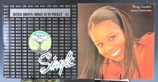 Collection of ten Reggae and Soul records comprising nine LPs and one 12" single. LPs are Bob Marley (and the Wailers) Legend, Soul Revolution and The Birth Of A Legend, Eddy Grant Killer On The Rampage, Osibisa Happy Children, Stevie Wonder Original Musiquarium I, Michael Jackson Thriller, Randy Crawford and Lionel Richie plus Dennis Brown 12" single. Vinyl appears VG+ to Ex in the main.