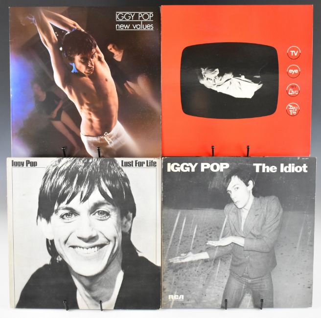 Eight Punk Rock / Post Punk / New Wave LPs comprising five Iggy Pop and three Patti Smith Group. Iggy Pop titles are The Idiot (first USA pressing), Lust For Life (UK RCA Victor) with 'Idiot' in deadwax, New Values (UK RCA Victor), TV Eye 1977 Live (UK RCA Victor) and Kill City (UK Radar). Patti Smith titles are Dream of Life, Easter and Radio Thiopia. Vinyl appears VG+ or better in the main