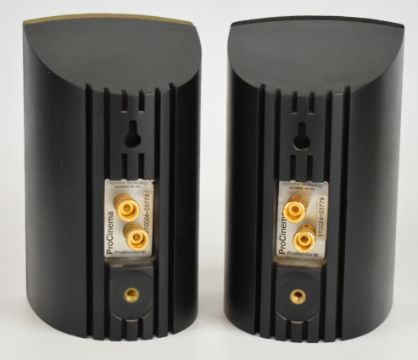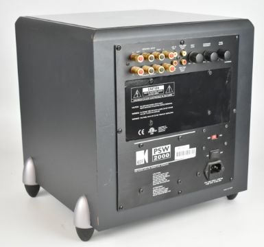 Home cinema speakers comprising a Definitive Technology Promonitor seven piece satellite or bookshelf set and a Kef PSW 2000 subwoofer, together with additional grilles and owner's manuals.