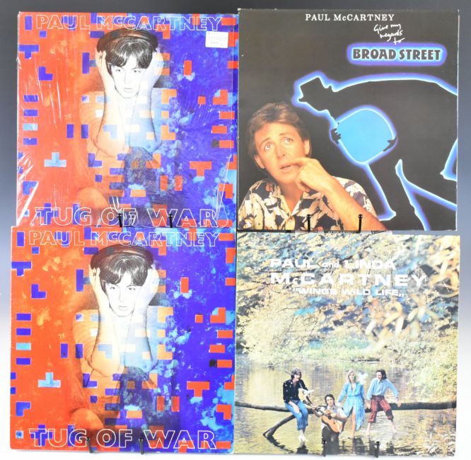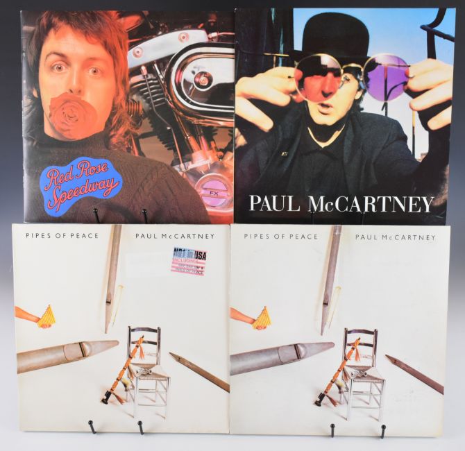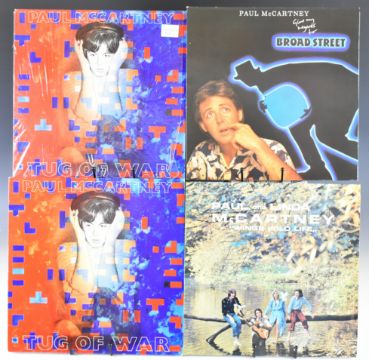 Paul McCartney / Wings collection of twenty five LPs and three 12'' singles. Wings At The Speed Of Sound (2 copies one of which has a non verified Paul McCartney signature on the cover), Rock 'n' Roll LP (Russia only release, record only no sleeve), This One, McCartney, My Brave Face, Red Rose Speedway, Pipes of Peace (3 copies), All The Best, Good Night Tonight, London Town (2 copies),  McCartney II (2 copies), Ram, Flowers in the Dirt (3 copies), Wings Wild Life, Tug of War (2 copies), Broad Street and Press to Play. Vinyl appears VG+ in the main
