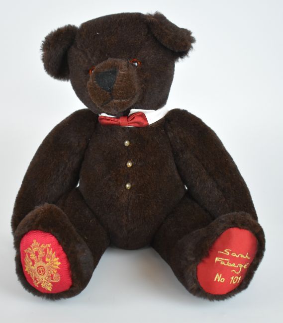 Five Teddy bears and similar stuffed animals by Merrythought, Hermann and Charlie Bears, to include Happy and Glorious and Sarah Faberge's The Imperial Bear, tallest 38cm, some with certificates.