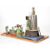 Wilesco D455 live steam stationary engine, with water level sight glass, lever operated whistle, slip eccentric single cylinder engine with spoked flywheel, raised on a faux brick base, mounted on a display board with shaper, Mamod line shaft, further line shaft and Mamod press and hammer, overall length of display 62cm