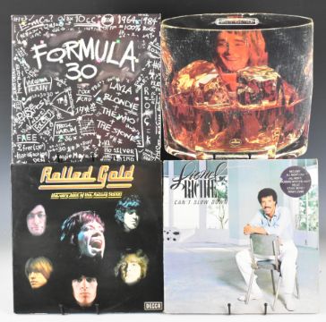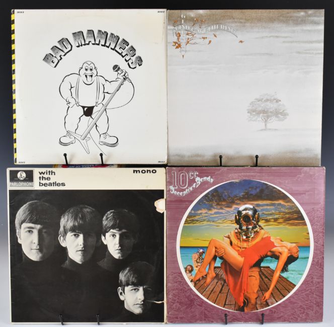 Twenty seven LPs and two ZZ Top 12" singles. LPs include Led Zeppelin In Through The Out Door label variant A with 'A' on spine, in brown bag, two Queen, The Small Faces with unboxed red Decca label, With The Beatles early press with Emitex liner etc, 10cc, Genesis, Bad Manners, REO Speedwagon, Cat Stevens, Roxy Music, Chris Rea, Bread, Santana, Status Quo, Rod Stewart, Elton John, David Cassidy, Lionel Richie etc. Vinyl appears VG+ or better in the main some may grade down.