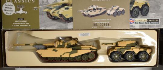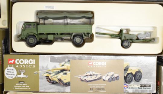Nine mostly Corgi diecast model military vehicles, all boxed.