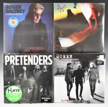 Twenty four Rock / Pop LPs, all new / sealed in shrink wrap, including Bryan Ferry, two Van Morrison, The Nice, three Elton John, Emerson Lake and Palmer, The Pretenders, Queen, Styx, Roger Daltrey, two Steve Miller Band, The SLP, Puppy, Embrace, Alpha Beat, Dr John Cooper, Rod Stewart etc. Part of a collection of 300 new / sealed LPs in this auction.