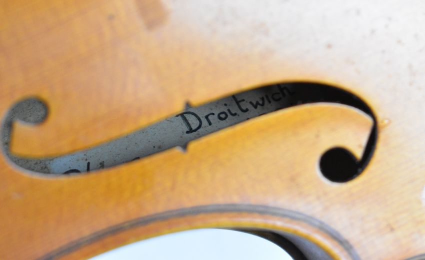 20th century violin labelled Robert J Vale, Droitwich,1986, with two piece back measuring 35cm excluding button, overall length 59cm, requires tuning pegs, tailpiece etc.