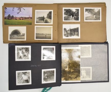 [Far East] Photograph album of a trip to Japan in 1955 including images from Hong Kong Harbour, Silvermine Bay, Wanchai, Moji, Pusan Harbour, Nikko, Kyoto, Osaka Castle and images from Malaya, Ceylon, Negombo, Aden, the Batu Caves etc together with a number of kodak cine film reels 16mm from the 1940s with several labelled Far East Views, Imperial City Japan, Siam Jap Generals and Review of 7th India Division by Lord Jones, another roll of film labelled Peking. Small Chinese green stone ‘laughing’ Buddha statue. An album of holiday photographs and postcards from a trip to Massachusetts and with two albums of America’s Bicentennial Covers 1782-1982 and 1780-1980 with commemorative postage stamps and first day covers with small group of overseas stamps