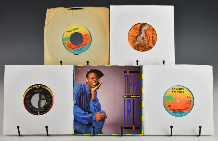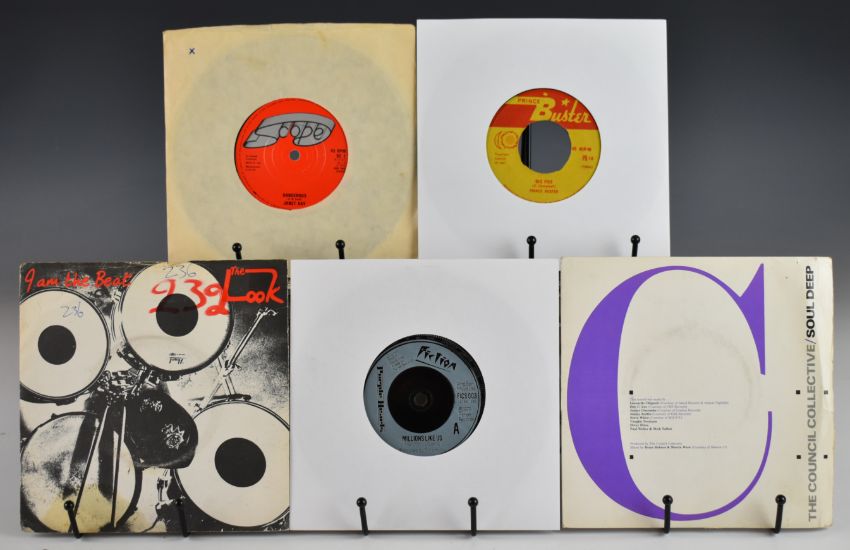 Approximately seventy five Mod / Scooterist interest Paul Weller / The Jam / Style Council / Ska / Two Tone / Reggae 7" singles includes fifteen The Jam, four Style Council, two Purple Hearts, Prince Buster, Janet Kay, Bob Marley, Tippa Irie, Third World, Judge Dread, Peter Tosh, Amazulu, Aswad, UB40, Eddy Grant, eight Madness, three Bad Manners, Untouchables, three The Specials, The Beat, Special AKA, The Selecter, Secret Affair, The Lambrettas. Vinyl appears VG+ in the main, some may grade up or down.