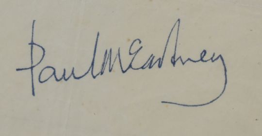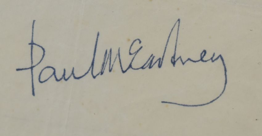 Beatles Fan Club blue ink stamped autographs on sheet of paper, dated top left corner November 1963. The ink stamps were used by the original Beatles Fan Club secretaries to meet the demand for signed items before the autopen was developed and used on later fan club issued items.