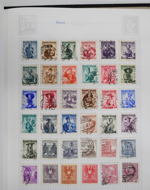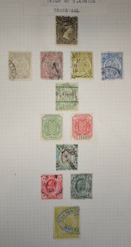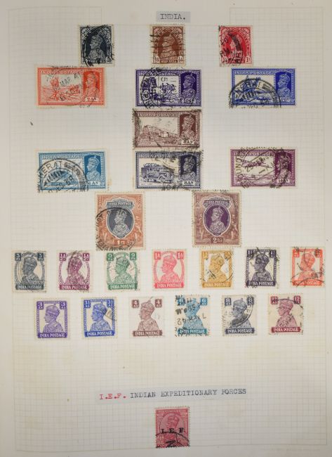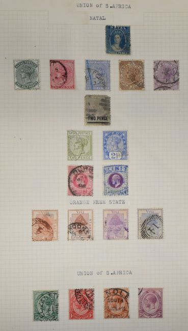 GB, Commonwealth and World stamp collection in three springback albums, GB stamps to include 1840 1d black, 1883 5/- fine used, various other Queen Victoria issues, King George VI mint definitive stamps to 5/-, Queen Elizabeth II mint commemorative stamps to 1973, Commonwealth countries including Canada, Natal & India, KUT stamps and first day covers. Foreign stamps include Germany and early USA